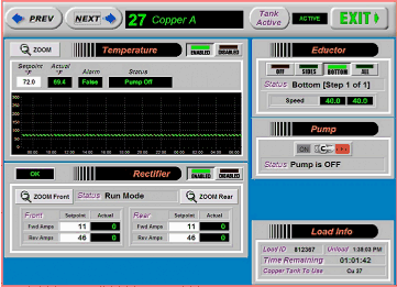 Automatic controls are configured to control all aspects of the plating operation including: hoist scheduling, rectifier control, temperature monitoring and control